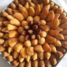 Salgados sortidos Pode conter: quibe, coxinha, bola de queijo, bola de calabresa ,Empadas de frango, saltenha e pastel frito frango.