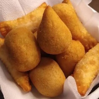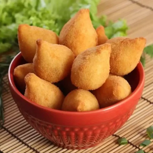 Coxinha tamanho festa, frito na hora, quentinho e sequinho. Irresistivel!!!