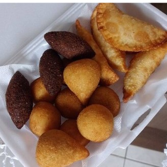 7 salgados, quentinhos, frito na hora + 1 refri de 200ml bem geladinho.