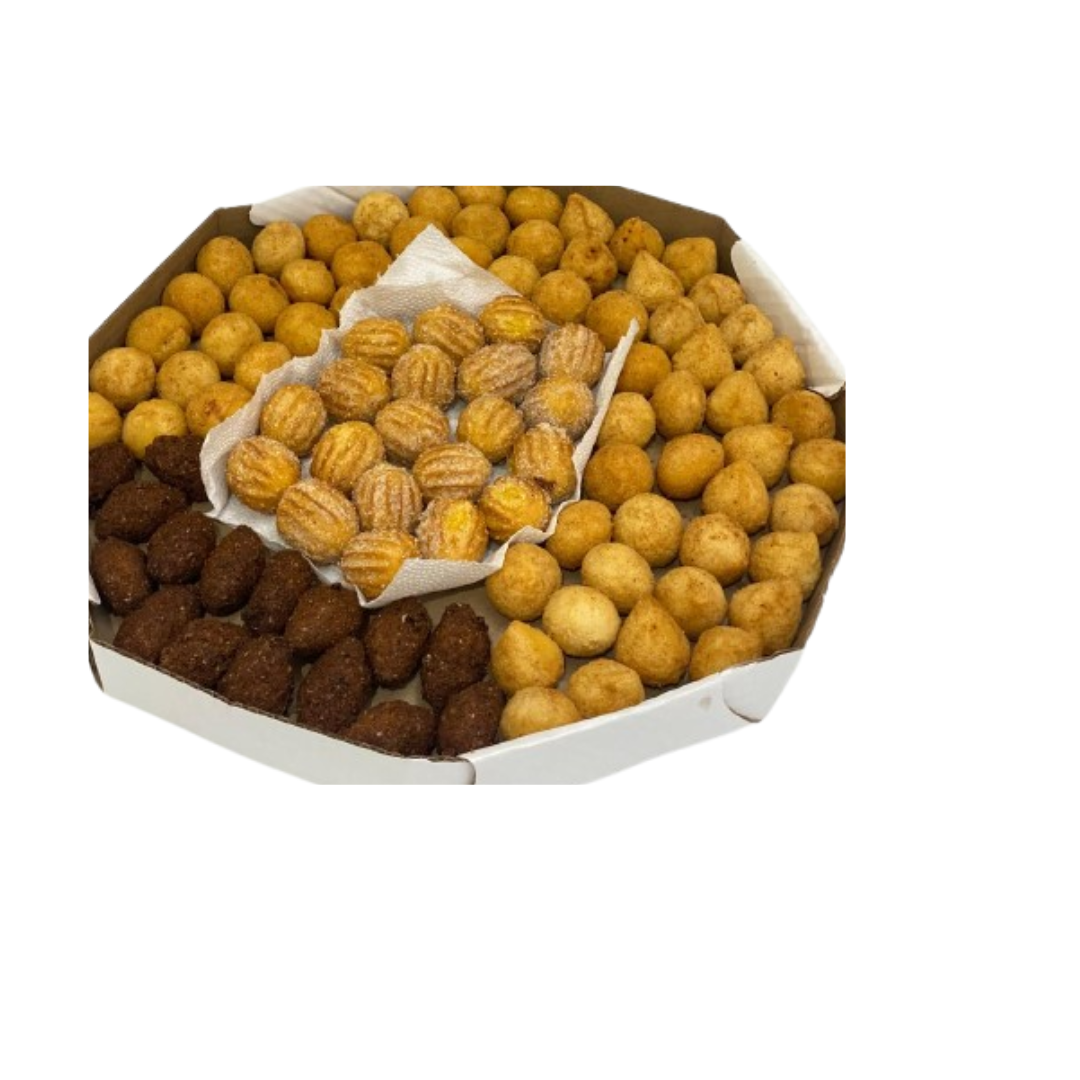 O 'Kit para lanche é a escolha perfeita para seu evento. Composto por uma seleção sofisticada e criteriosa de mini salgados: irresistíveis mini coxinhas, e saborosos mini bolinhos, todos pesando 15g e em uma quantidade generosa de 20 unidades. Este combo assegura não só o deleite do paladar, mas também a diversão dos seus convidados. Sabor, variedade e diversão estão garantidos com este kit! Monte do seu jeito e torne sua festa inesquecível!