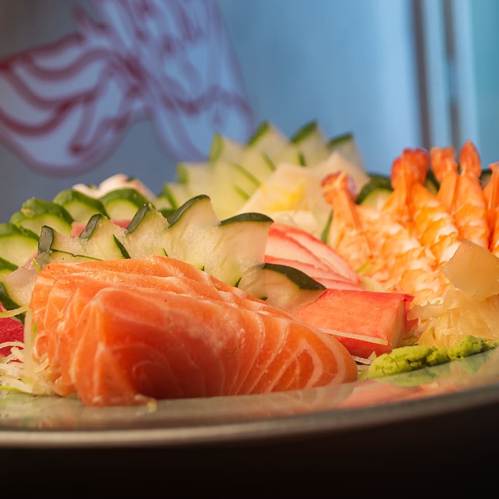 4 Sashimis de salmão ao tempero do chefe, 3 sashimi de atum selado ao molho de ervas, 3 sashimis de agulhão com raspas de limão sisiliano, 4 sereia maki, 4 baterá de salmão, 4 dyo de shimeji de salmão, 4 miruka maki, 4 ebiten especial, 4 shake couve e 4 baterá maçaricado.