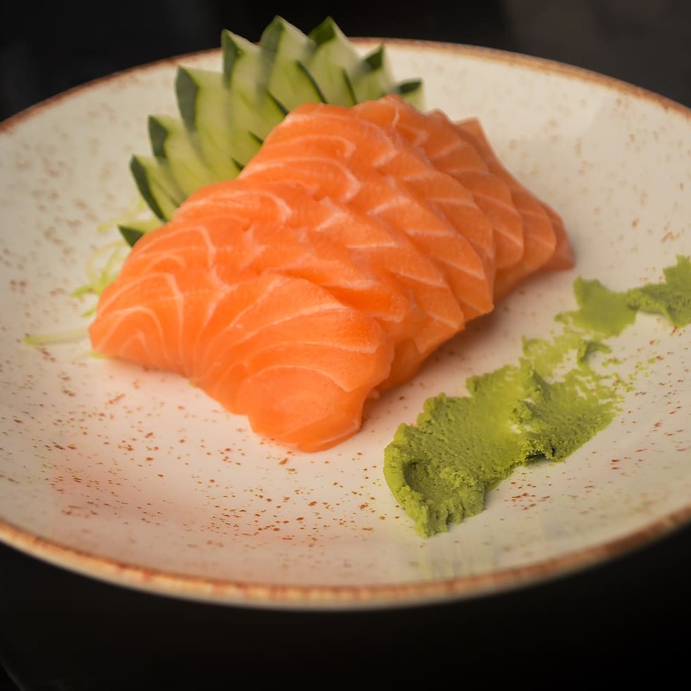 Nesta requintada porção de 'Sashimi de Salmão', servimos seis peças artesanais, cuidadosamente preparadas para realçar a essência da autêntica culinária japonesa. Cada fatia de salmão fresco é um convite ao paladar, proporcionando um sabor delicado e uma textura suave que derrete na boca. Este prato é o epítome da simplicidade e frescura, refletindo a verdadeira beleza do sashimi. #sashimi #salmão #artesanal #culinária #japonesa