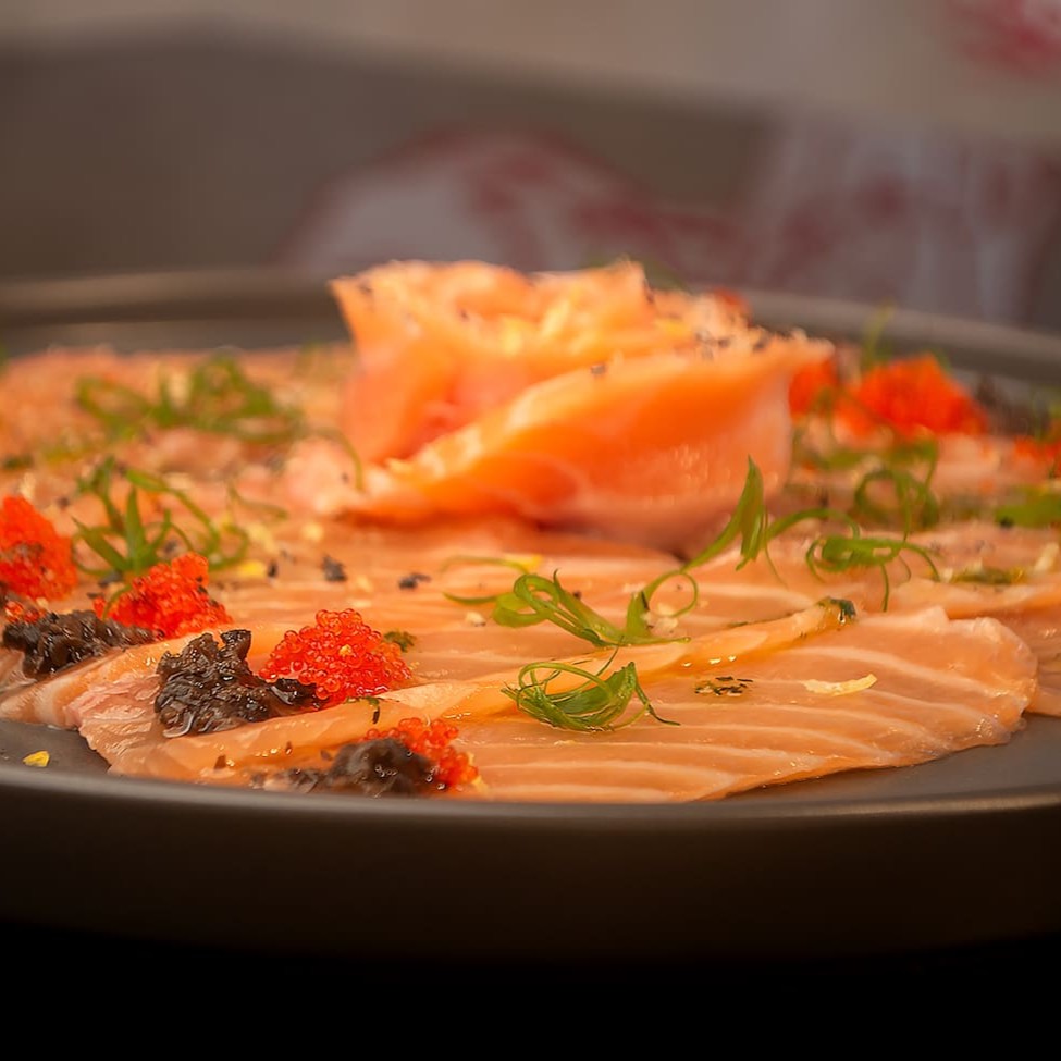 Saboroso Carpaccio de Salmão, uma exclusividade da nossa casa. Uma mistura irresistível e sofisticada do mais fresco salmão, realçado pela raspa de limão siciliano que traz um toque cítrico singular. Azeite trufado, delicadamente perfumado, acrescenta um toque de luxo e complexidade ao prato. A flor de sal, elegante e sutil, equilibra as notas de sabor, enquanto as ovas de massago adicionam um toque de sabor marinho e uma textura inesperada. Finalizado com o segredo da casa, o tempero do chef, que dá a esse prato uma pitada de mistério e sabor extra. Uma verdadeira sinfonia de sabores em um prato. #salmão #limãosiciliano #azeitetrufado #flordesal #ovasdemassago