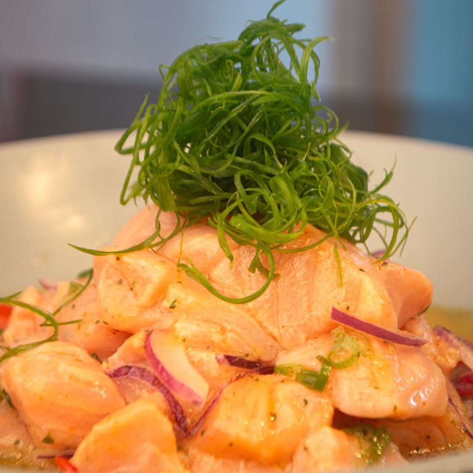 Apresentamos o nosso Ceviche de Salmão, uma deliciosa e sofisticada opção da categoria Ceviches. Este prato, com generosos 300g, é composto por suculento salmão de alta qualidade, sublimemente marinado em uma mistura de limão e laranja, aguçando os sabores cítricos. Adicionamos uma seleção de ervas frescas, que resultam em um molho aromático, tomates cereja, cebola e cebolinha cuidadosamente escolhidos para acentuar a riqueza de sabores. Para finalizar, nosso Ceviche é levemente picante, oferecendo um toque de ousadia. Ideal para quem aprecia a autêntica culinária marítima. #salmão #ceviche