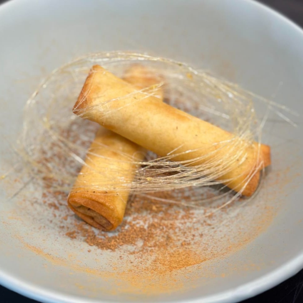 Hot Banana Da Terra Envolto De Massa Harumaki Com Fios De Mel