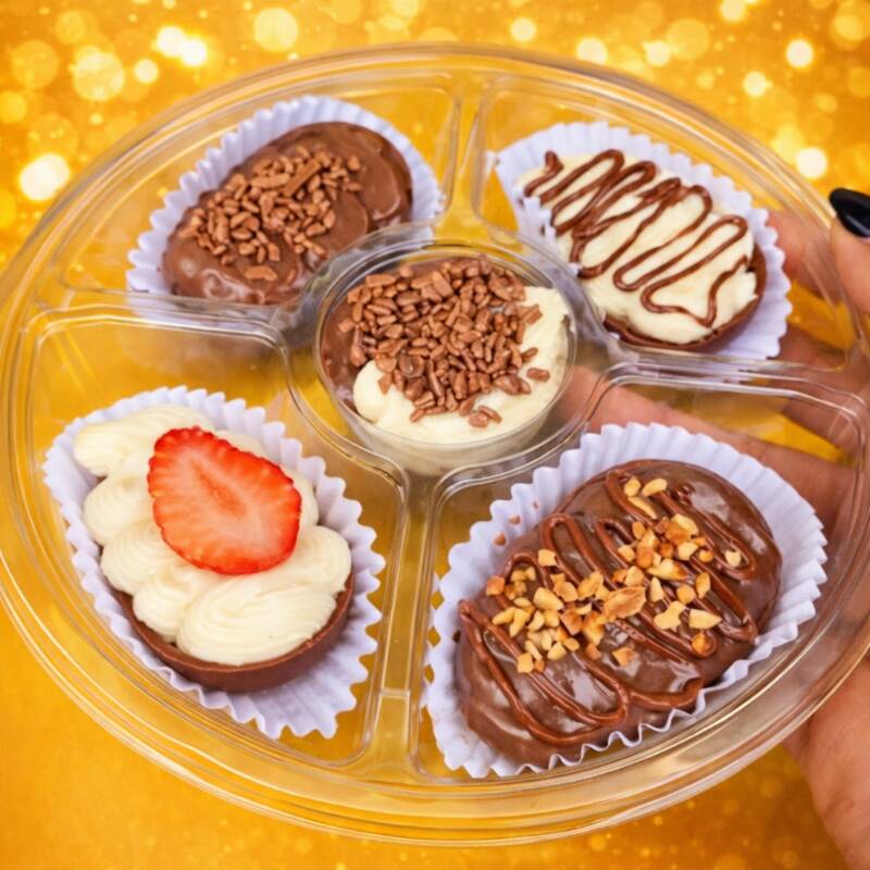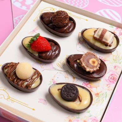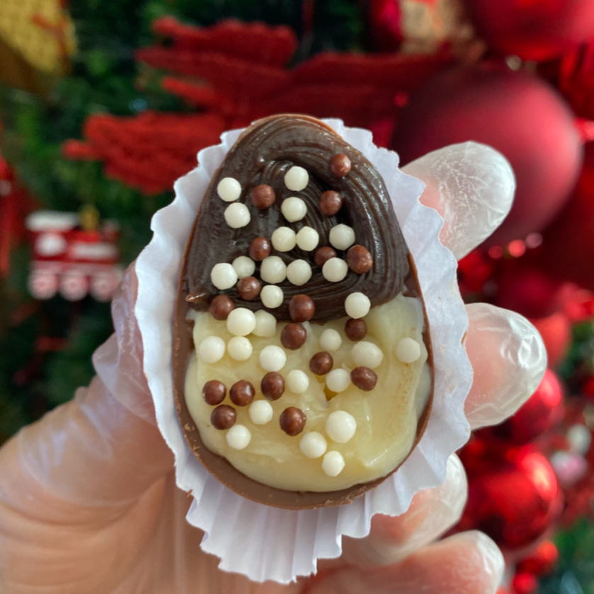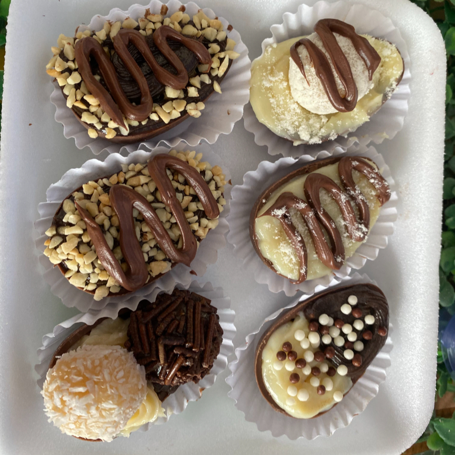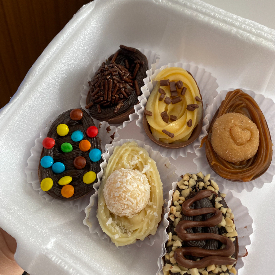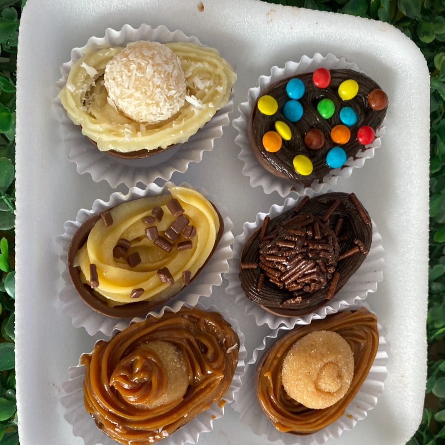 Petisqueira Presenteavel De Ovos 50g - Com 4 Unidades: Brigadeiro, Ninho Com Morango,tipo Ferrero Rocher E Ninho Com Nutella No Centro Casadinho E Granulado.