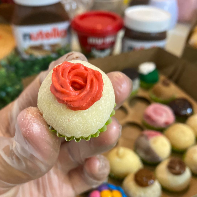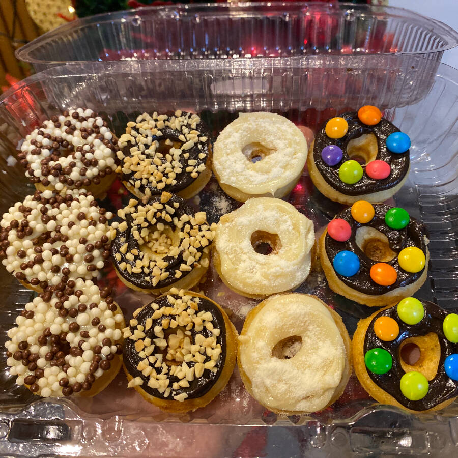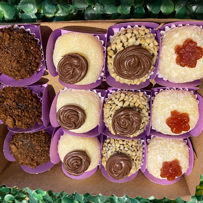 Donuts artesanal Pesa aproximadamente 12g, não é frito — preparado na máquina. Possui massa leve e macia; com cobertura, o sabor se torna marcante e irresistível. ESCOLHER ATÉ4 OPÇÕES NO CHAT OU OBSERVAÇÃO:CHOCOBAW, BRIGADEIRO,BEIJINHO,OREO,MARACUJA,BRIGADEIRO BRANCO, NINHO, M&M, BRIGADEIRO COM AMENDOIM,DOCE DE LEITE OU DOCE DE LEITE COM COCO ESCOLHER NO CHAT OU COLOCAR NA OBSERVAÇÃO