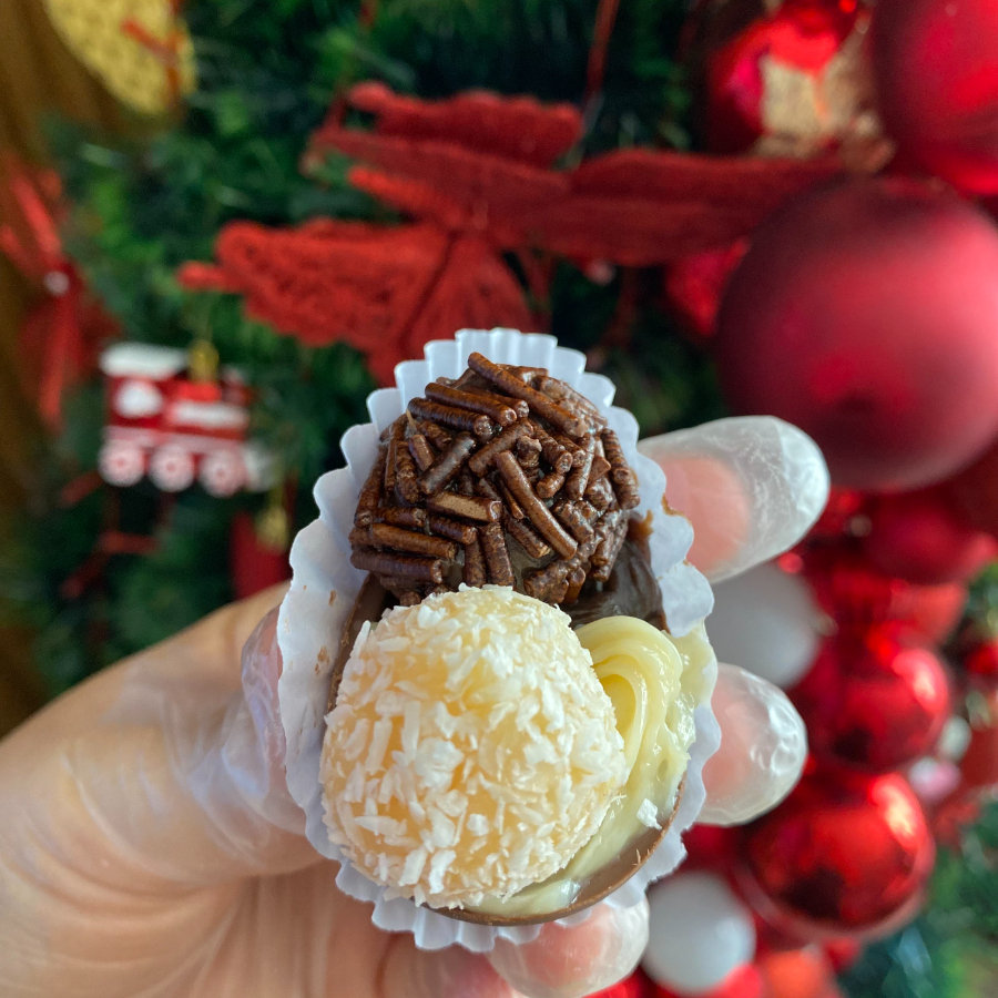 Mine Ovo 50g: Brigadeiro Com Pedaço De Morango E 1 Brigadeiro Em Cima