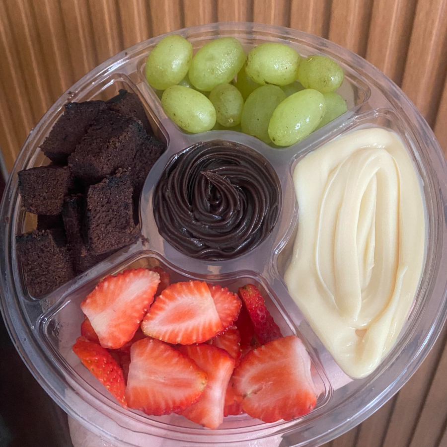 Petisqueira: Uva, Morango, Brawnie, Ninho Com Recheio De Brigadeiro No Centro