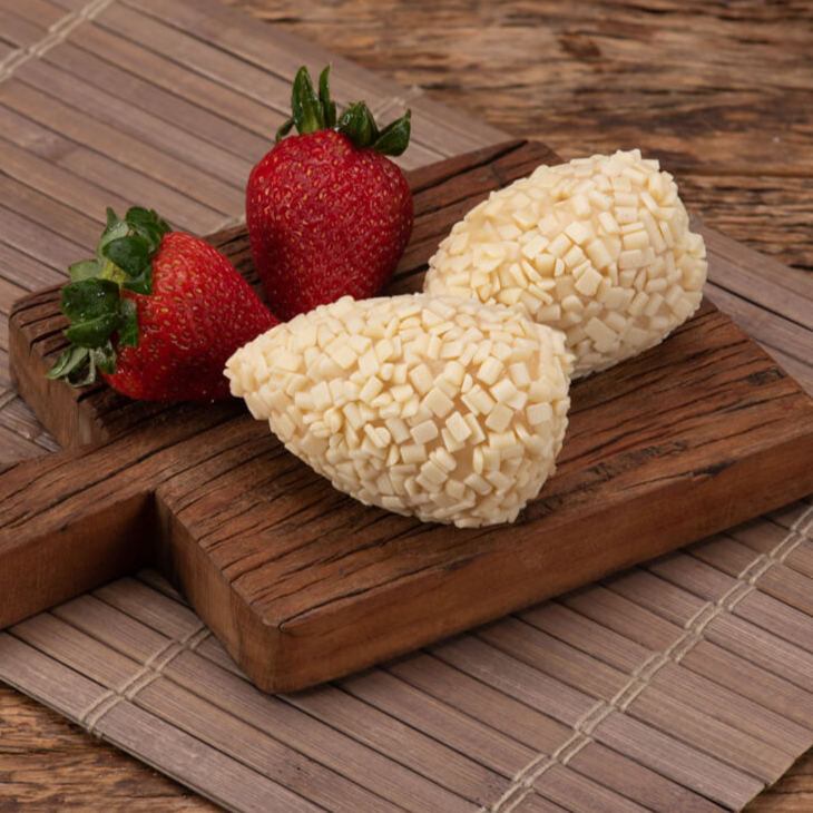 Morango Coberto No Brigadeiro Branco Finalizado No Amendoim