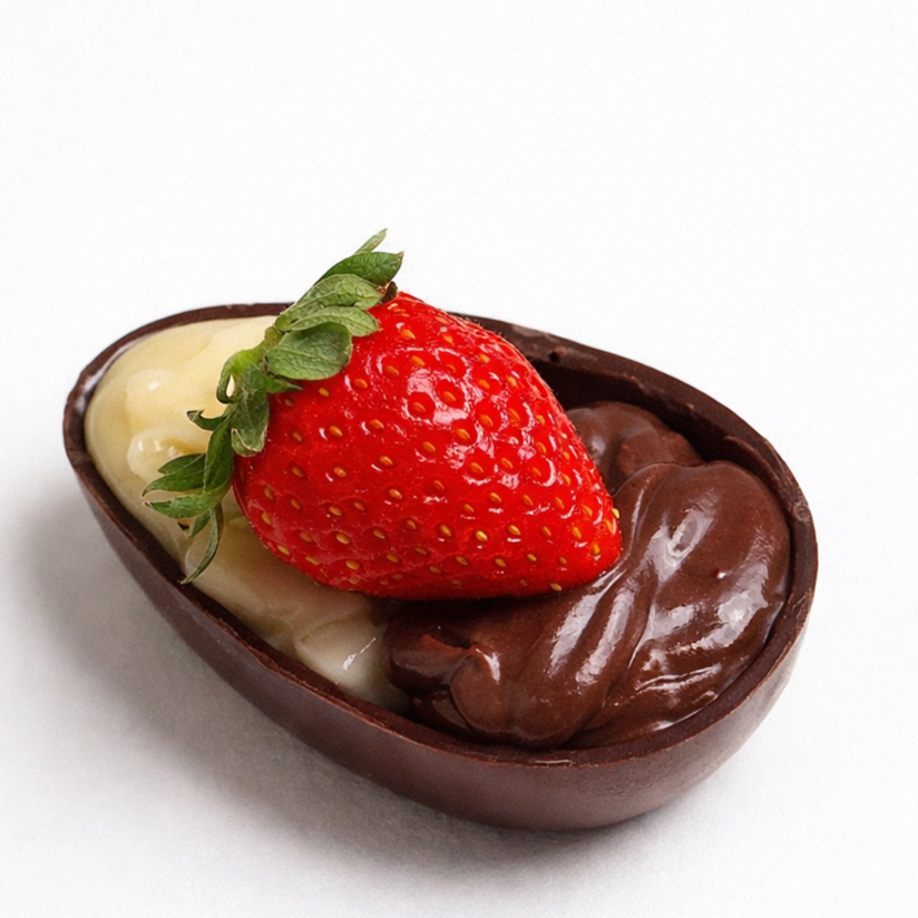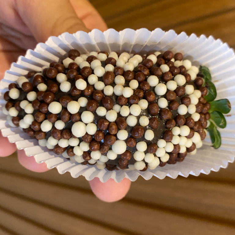 Pequeno no tamanho, gigante no sabor! 🤎 Casquinha de chocolate recheada com NOSSOS BRIGADEIROS cremoso e finalizada com PEDAÇO DE MORANGO que dão aquele toque divertido e irresistível. ✨ 30g de pura tentação ✨ Recheio cremoso ✨ Perfeito para presentear ou se deliciar sozinho