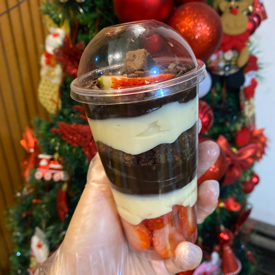 Copo 300ml: Morango Mais Brownie Junto Ao Casadinho