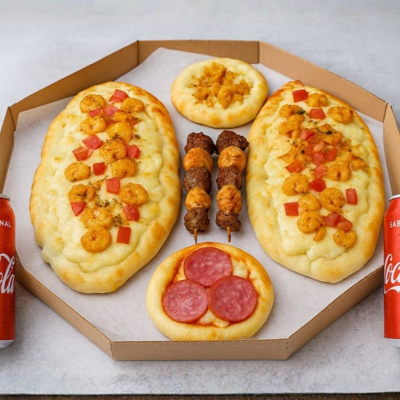 2 Mega Esfiha, 2 Mini, 2 Espetinhos + 1 Refri 1L Antartica Escolha seu País ou Estado. E se delicie com esse combo Saboroso!