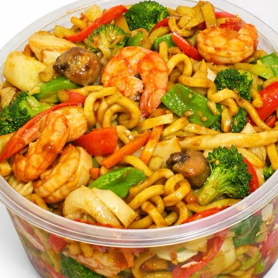 Macarrão,salteado com tiras de carne bovina, legumes frescos e molho especial do chefe.
