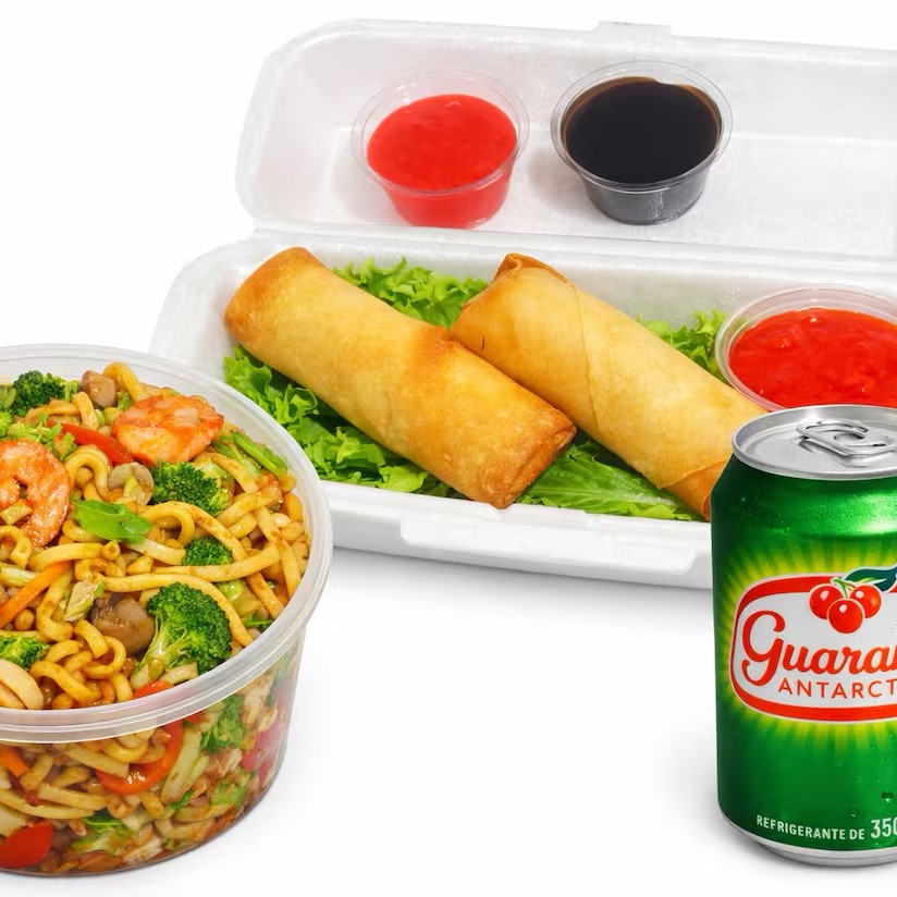 Yakissoba De Camarão 1kg + Dupla De Rolinho De Queijo + 2 Refrigerante Pet 200 Ml Copiar