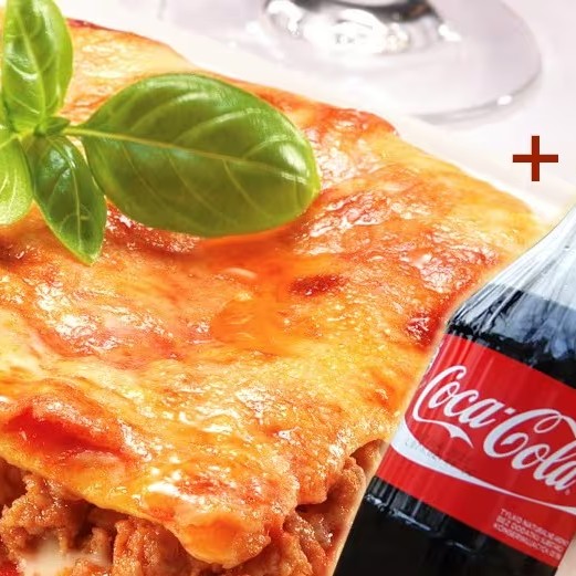 Combo de uma lasanha extra grande para 2 a 3 pessoas queijo e presunto uma coca cola de 1 litro.