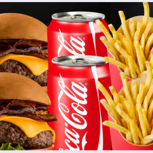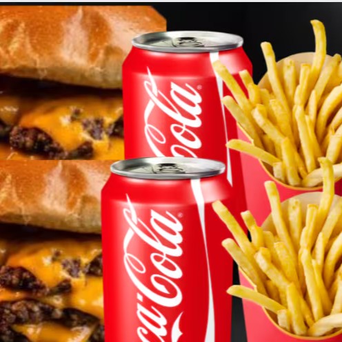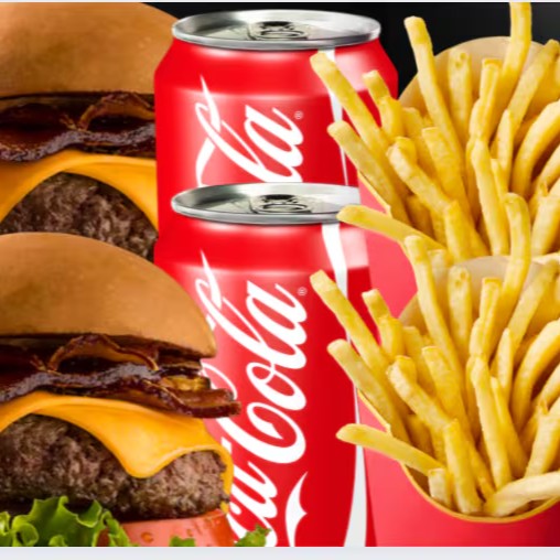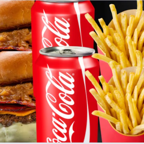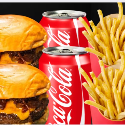 Dois burgers no pão brioche macio, preparados com blend suculento de 150g e cobertos com queijo cheddar cremoso, bacon crocante, tomate fresco, cebola crocante, alface verdinha e maionese especial que realça cada sabor. Para acompanhar, duas porções generosas de batata crocante e duas Coca-Colas bem geladinhas. Perfeito para compartilhar ou se deliciar sozinho!