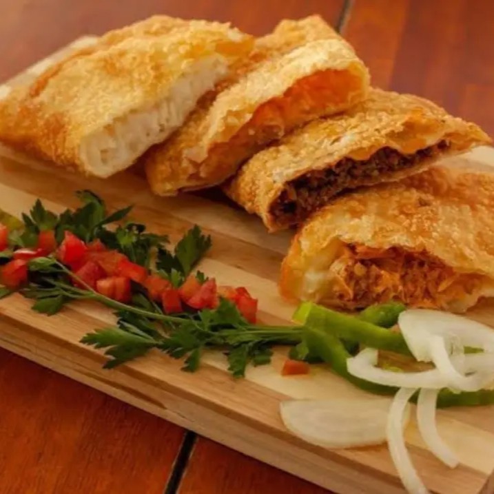 Massa crocante, queijo mussarela, 160g de carne, bacon em fatias, maionese verde caseira e tomate seco.
