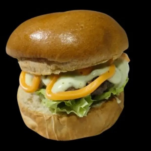 Pão batata, 100g de carne, queijo mussarela, creme cheddar, alface e molho Skina.