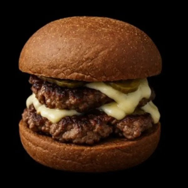 Pão australiano, 2 carnes 100g, queijo coalho, picles, bacon em fatias, cebola caramelizada e molho Skina.