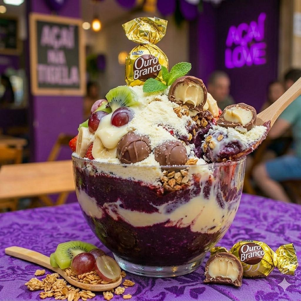 Delicioso creme de Ovomaltine, com o nosso verdadeiro e único açaí.