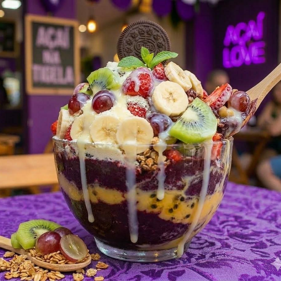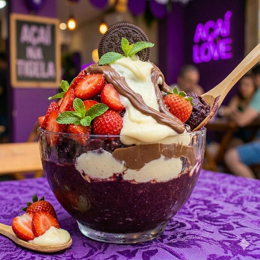 Delicioso creme de Ninho, com o nosso verdadeiro e único açaí.