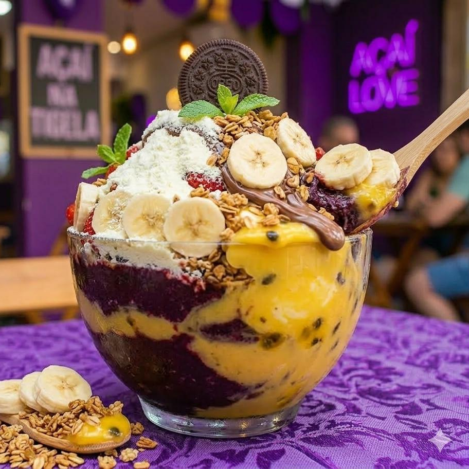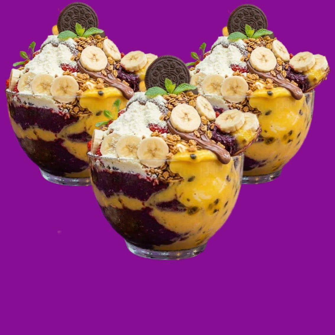 Delicioso creme de Maracujá, com o nosso verdadeiro e único açaí.