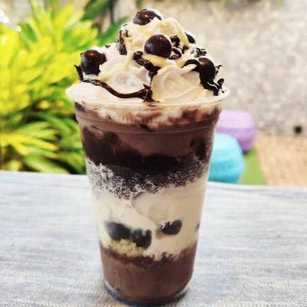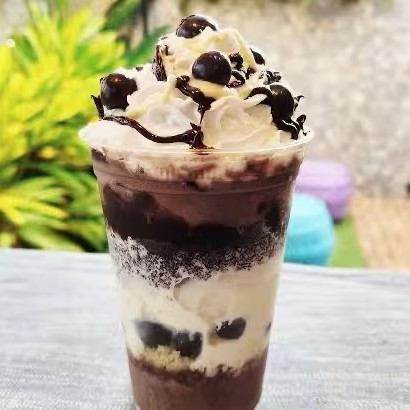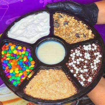 Você pode adicionar 2 caldas e 3 complementos grátis , copo com 2 camadas de adicionais.