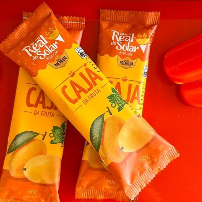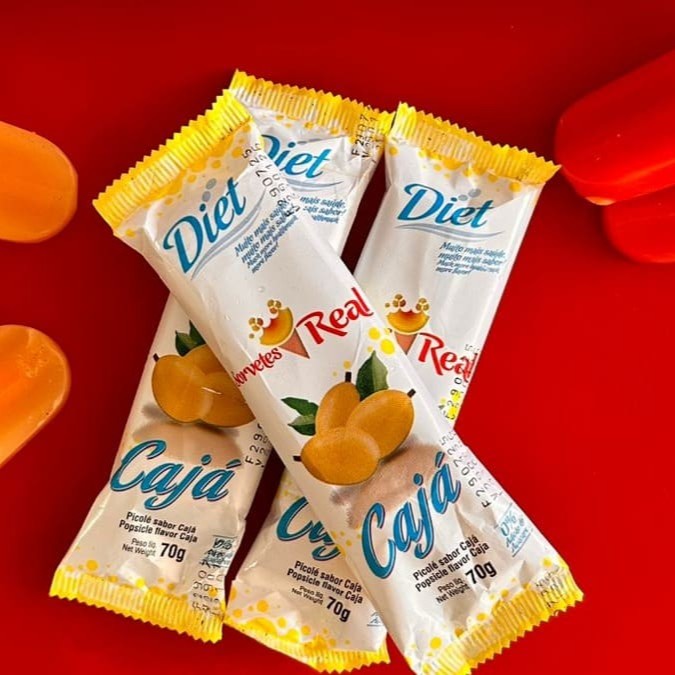 Delicioso picolé cremoso de cajá sem adição de açúcar, adoçado com sucralose.