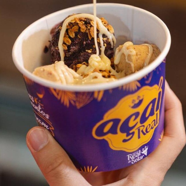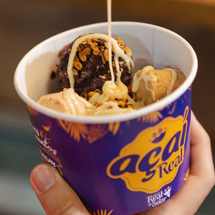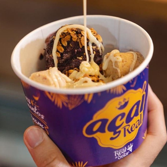 Açaí cremoso puro sem adição de nenhuma fruta, com o real sabor do açaí.