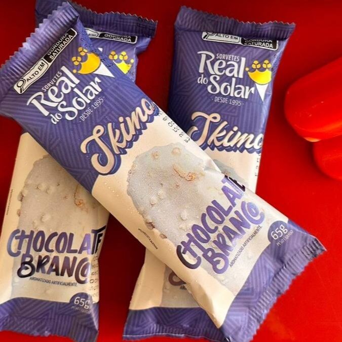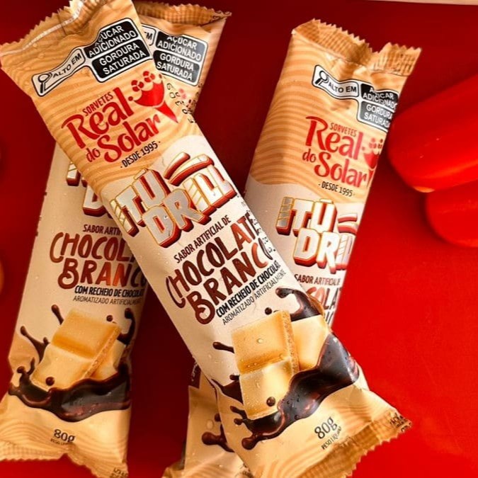 Picolé cremoso de chocolate branco recheado com os pedaços do chocolate meio amargo