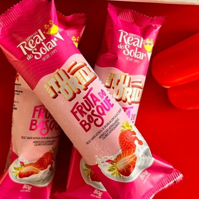Picolé cremoso de baunilha recheado com calda citrica de frutas do bosque