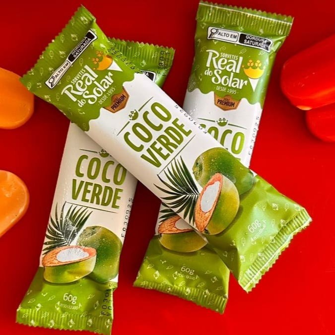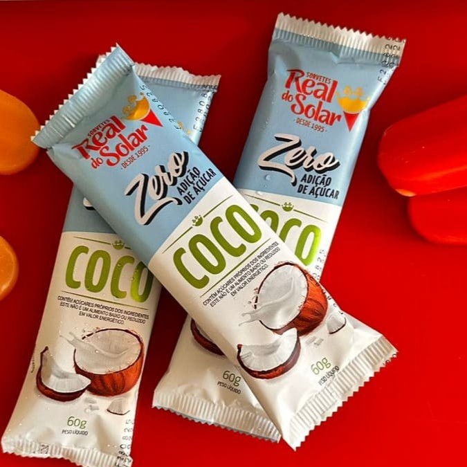 Delicioso picolé cremoso de coco sem adição de açúcar, adoçado com sucralose.