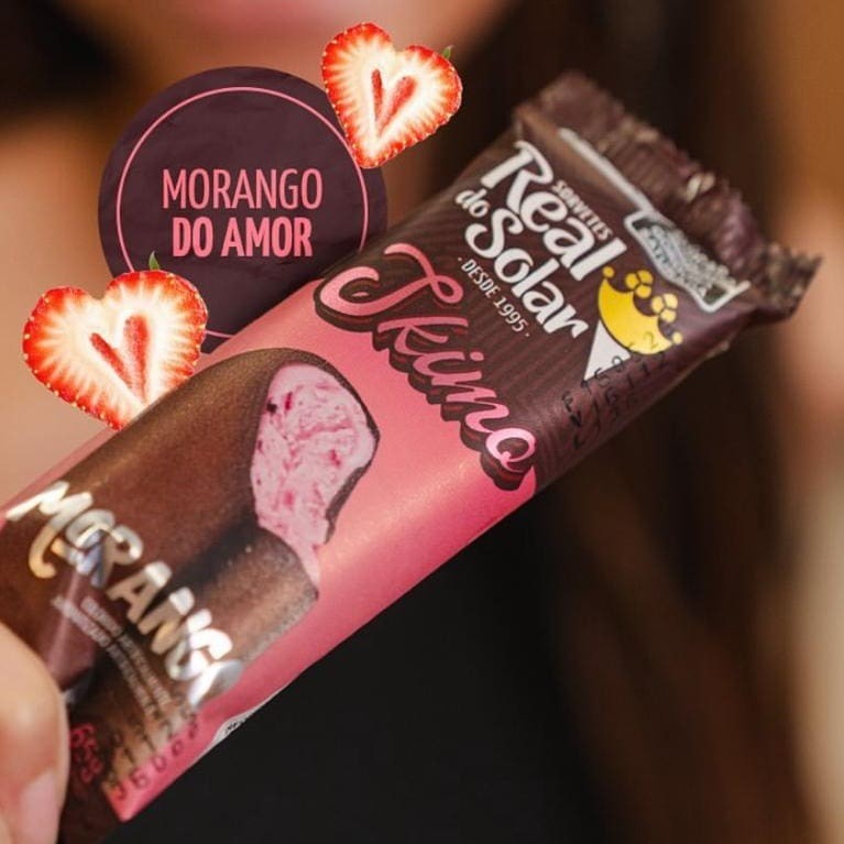 Delicioso picolé de morango ao leite com deliciosa casquinha de chocolate meio amargo