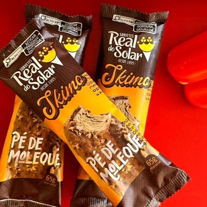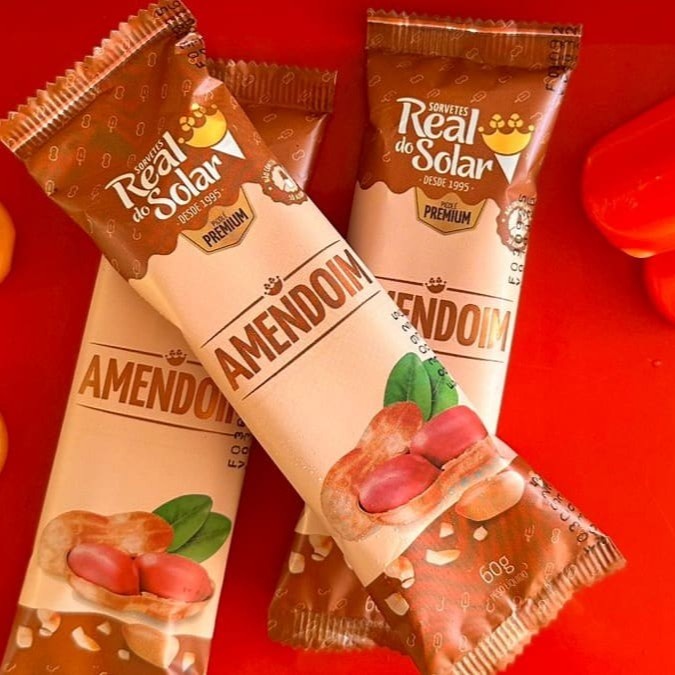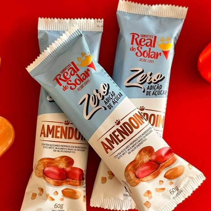 Delicioso picolé cremoso de amendoim sem adição de açúcar, adoçado com sucralose.