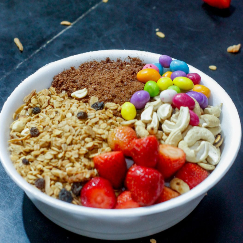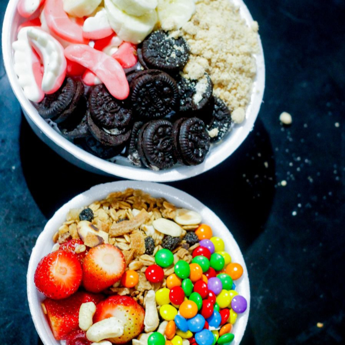 Escolha entre as opções de: Açaí tradicional, com morango, banana, zero ou creme de Ovomaltine, Ninho, sensação, e o delicie com ate 21 acompanhamentos!