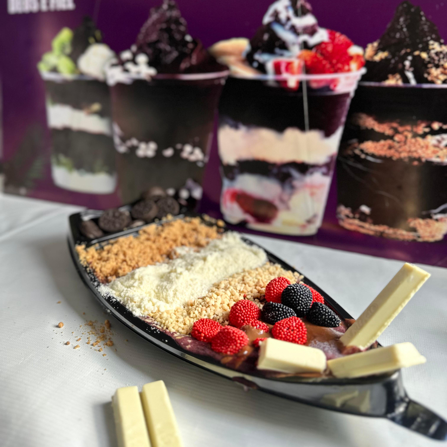 Escolha entre as opções de: Açaí tradicional, com morango, banana, zero ou creme de Ovomaltine, Ninho, sensação, e o delicie com ate 17 acompanhamentos!