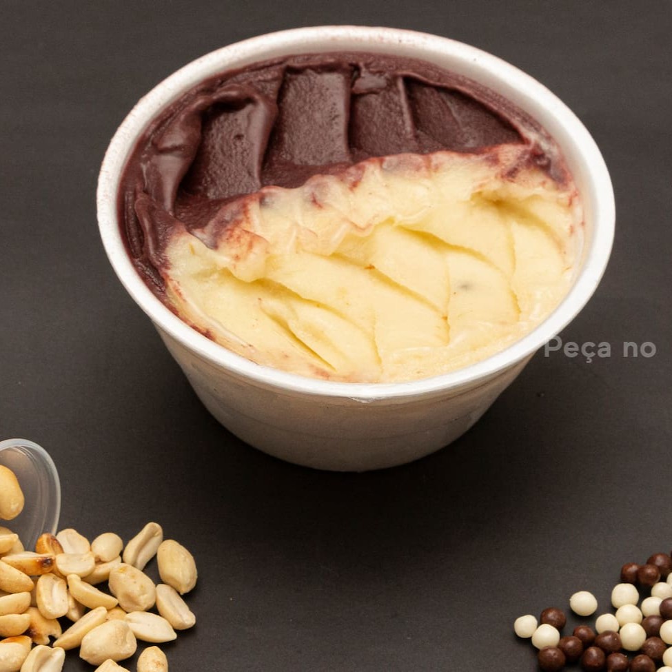 Açaí Cremoso e Geladinho. Para Complementar, Escolha 2 Acompanhamentos Grátis de 50ml Cada, Enviados em Potes Separados para Garantir a Qualidade e a Frescura dos Ingredientes.