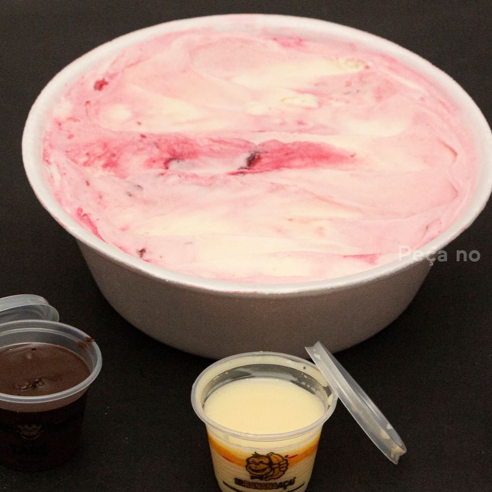 Sorvete Cremoso de 300ml. Com Escolha de Até 5 Acompanhamentos Grátis de 50ml Cada. Enviados Em Potes Separados!