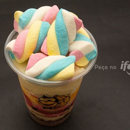 Creme em camadas +03 acompanhamentos gratuitos. Os 03 Acompanhamentos gratuitos irão dentro do copo, entre as camadas de creme.
