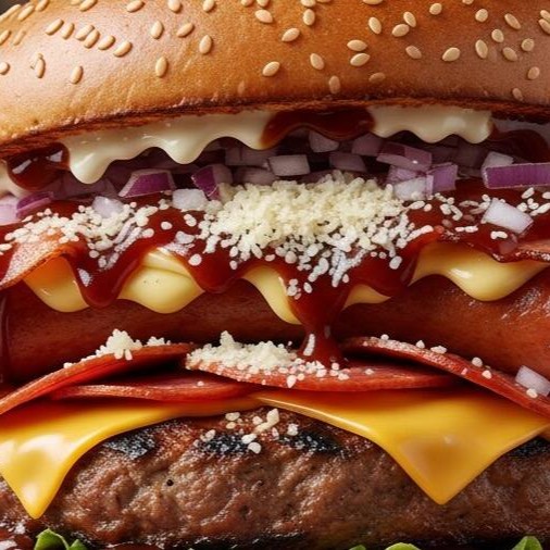 Hambúrguer, queijo, calabresa e salada
