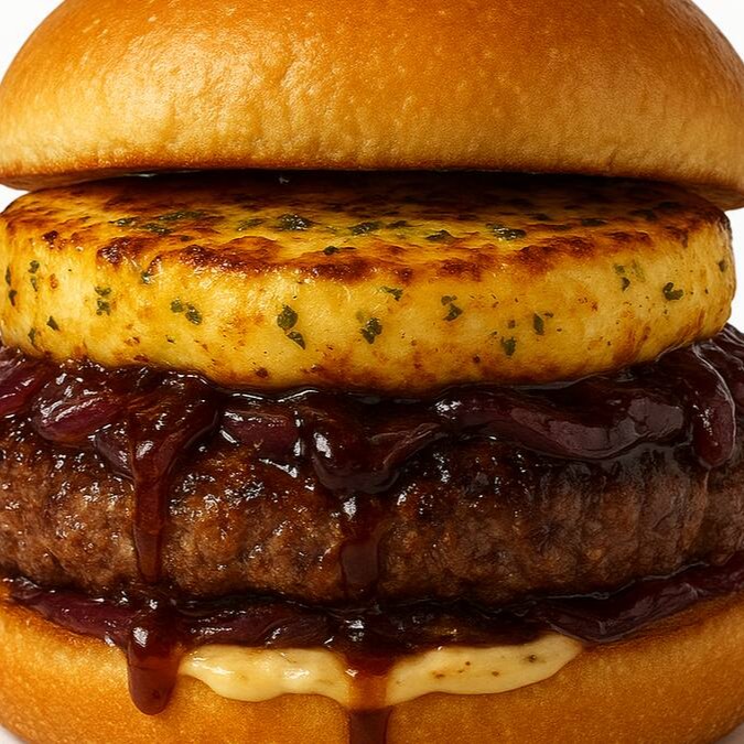 Pão australiano com leve toque adocicado. Hambúrguer artesanal de patinho, queijo cheddar cremoso e o nosso molho especial da casa