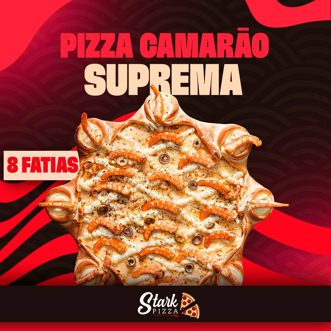Desfrute da nossa 'Pizza Camarão 8 fatias + Borda Vulcão de Camarão', uma criação exclusiva Stark Pizza'. Esta delícia gastronômica é preparada com um generoso recheio de suculentos camarões, complementado com a cremosidade do Catupiry Original. A cereja do bolo é a nossa inovadora borda vulcão, generosamente recheada com mais Catupiry Original e camarão. Um prazer para o paladar que eleva a experiência de consumir pizza a um novo patamar.