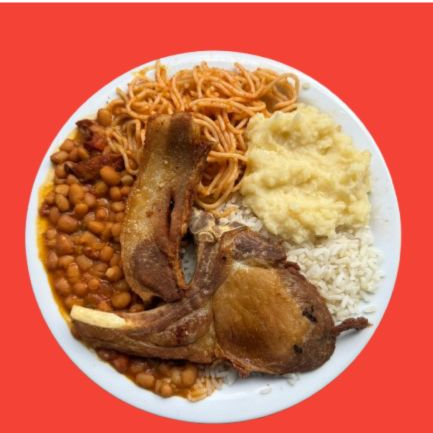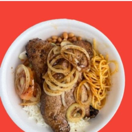 ARROZ, FEIJÃO, BISTECA NO PONTO, MACARRÃO E SALADA
