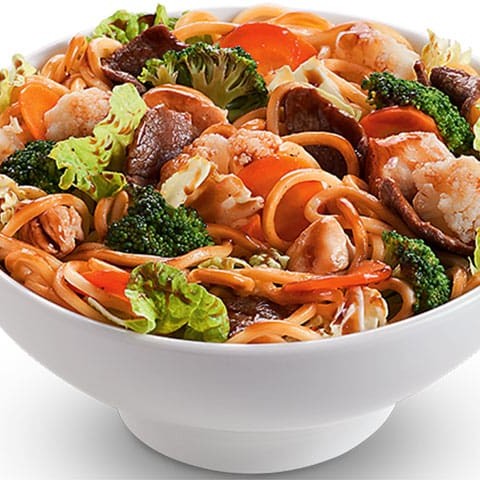 Yakisoba de carne, frango e legumes de aproximadamente 1kg + 1 refrigerante litro. *Nao permitida alteracoes nos combos promocionais.