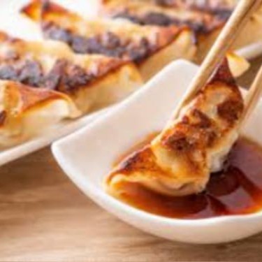 Porção de 6 unidades de guioza (bolinhos de massa fina recheados com carne suina, frango e vegetais, como repolho, cebolinha).