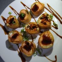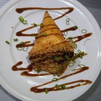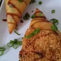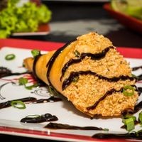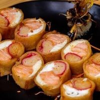 Salmão fresco grelhado, kani, cream cheese e cebolinha.