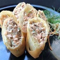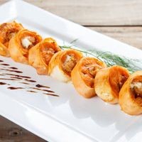 2 Rolinhos de salmão grelhado com creme cheese e cebolinha.