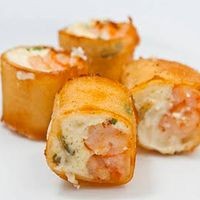 Salmão fresco grelhado, camarão, cream cheese e cebolinha.