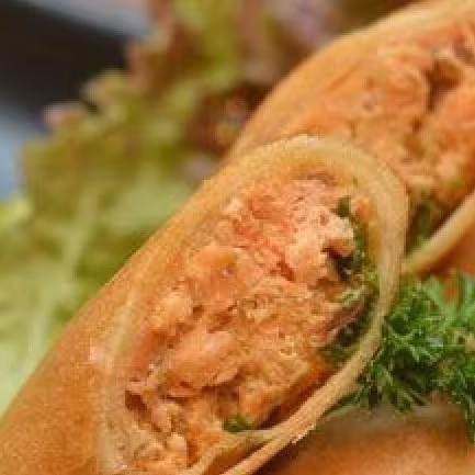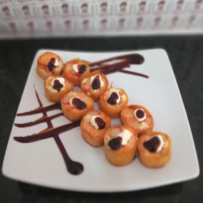 Harumaki de Salmão e Camarão com Cream Cheese e Cebolinha.